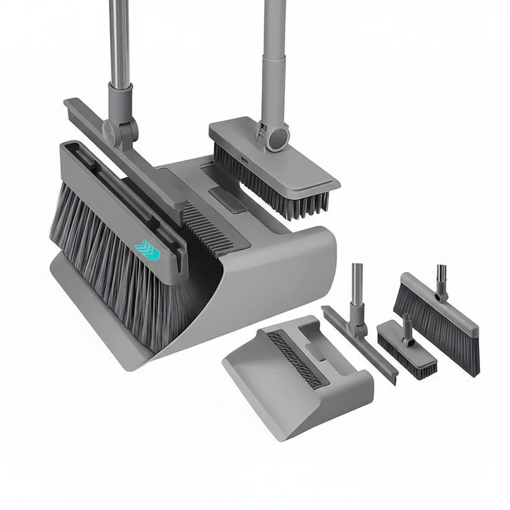This smart set streamlines your cleaning with a dense-bristle broom, a rubber-lip dustpan, and versatile attachments. It's designed for effortless, complete tidiness in any urban space.